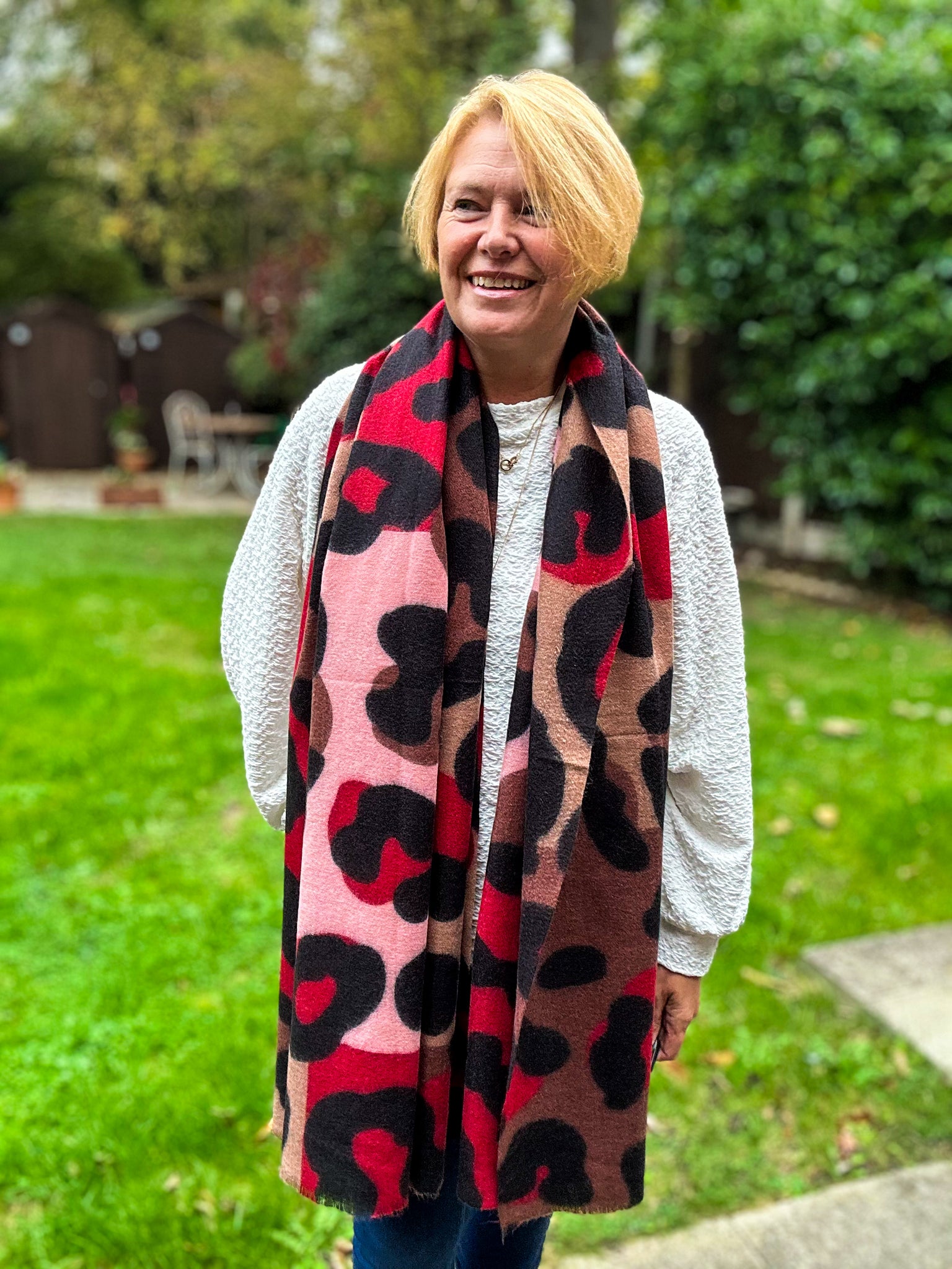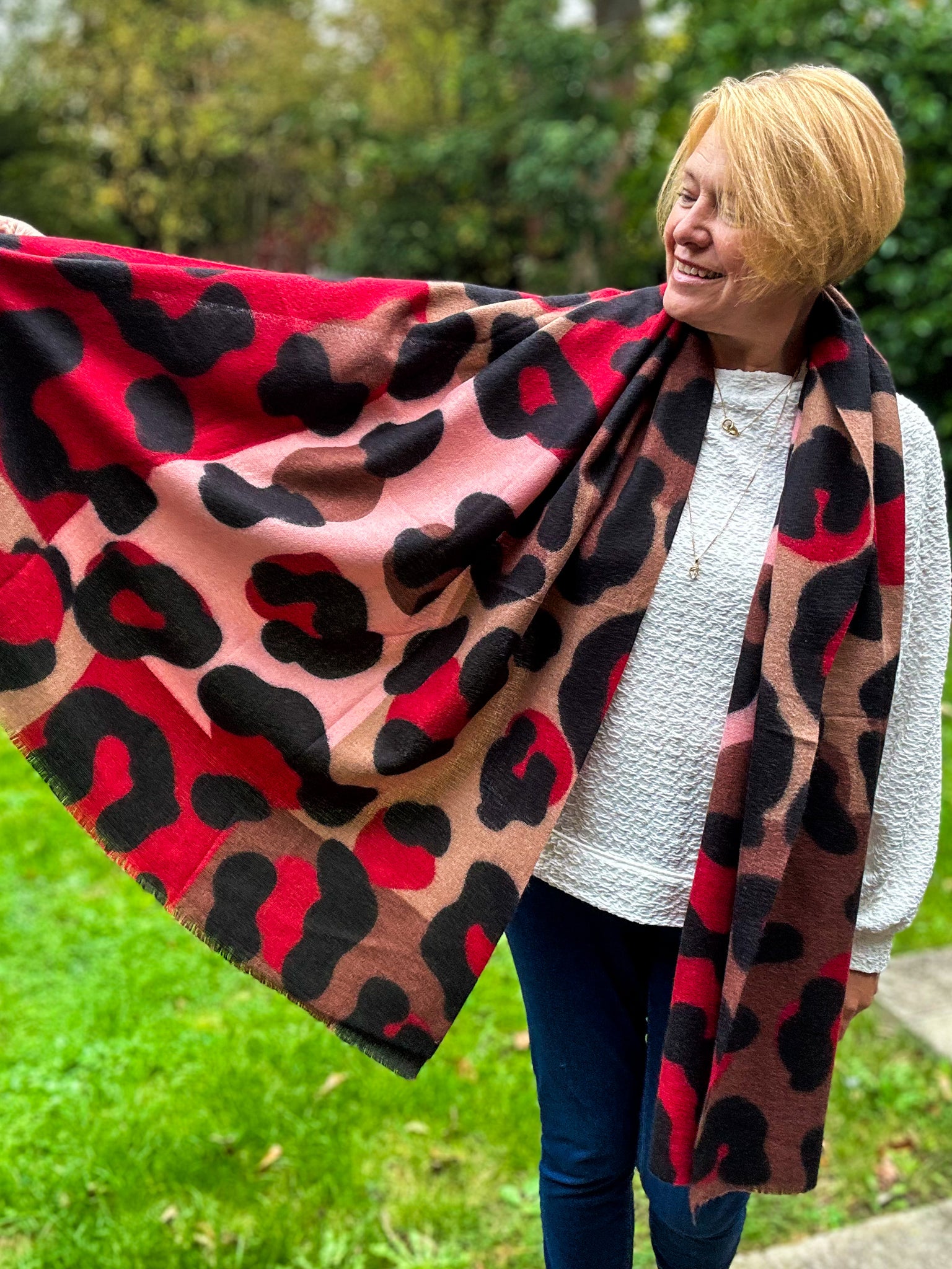 Thick Bold Leopard Animal Print RED PINK BLACK Pashmina Winter Scarf