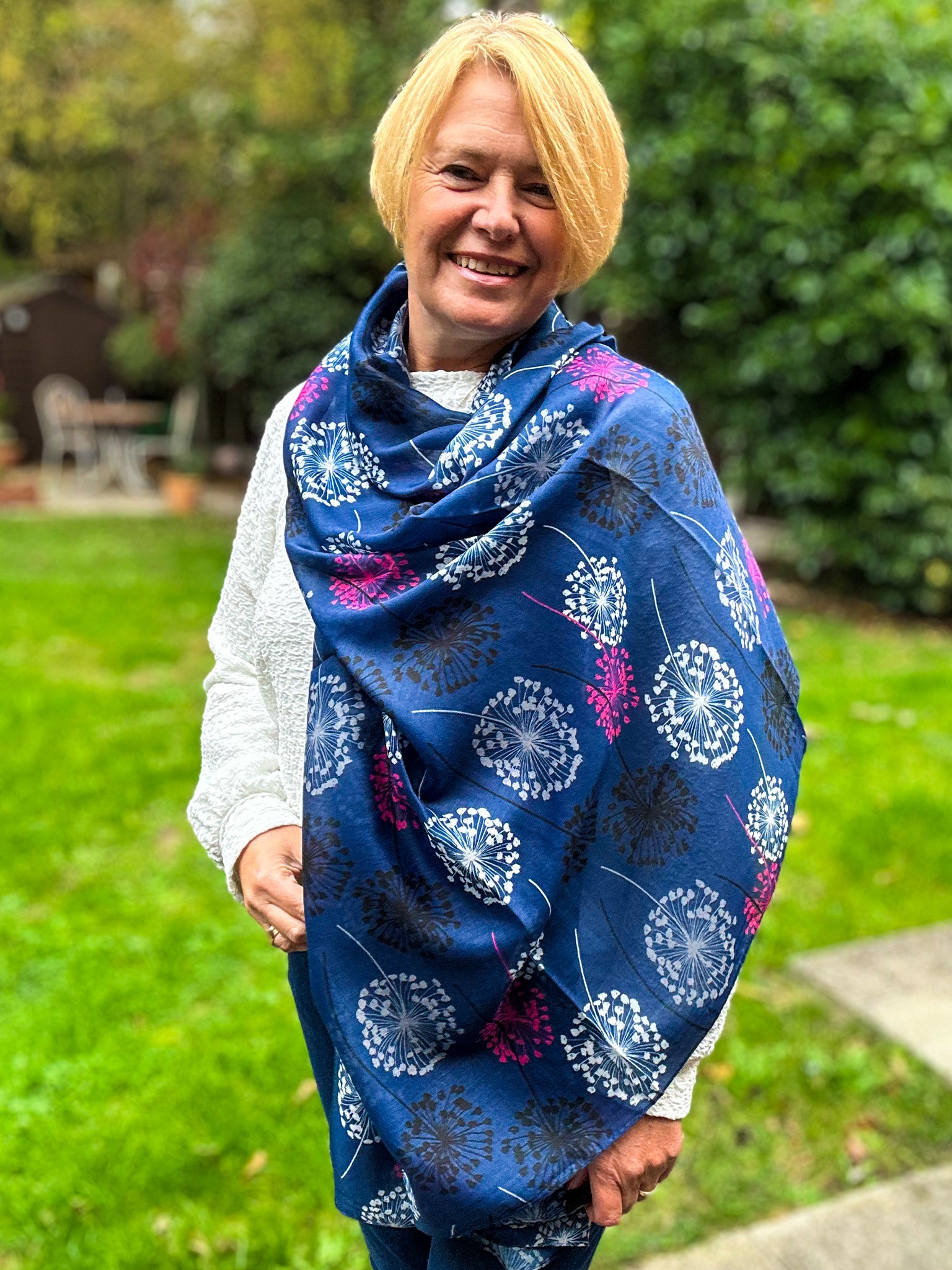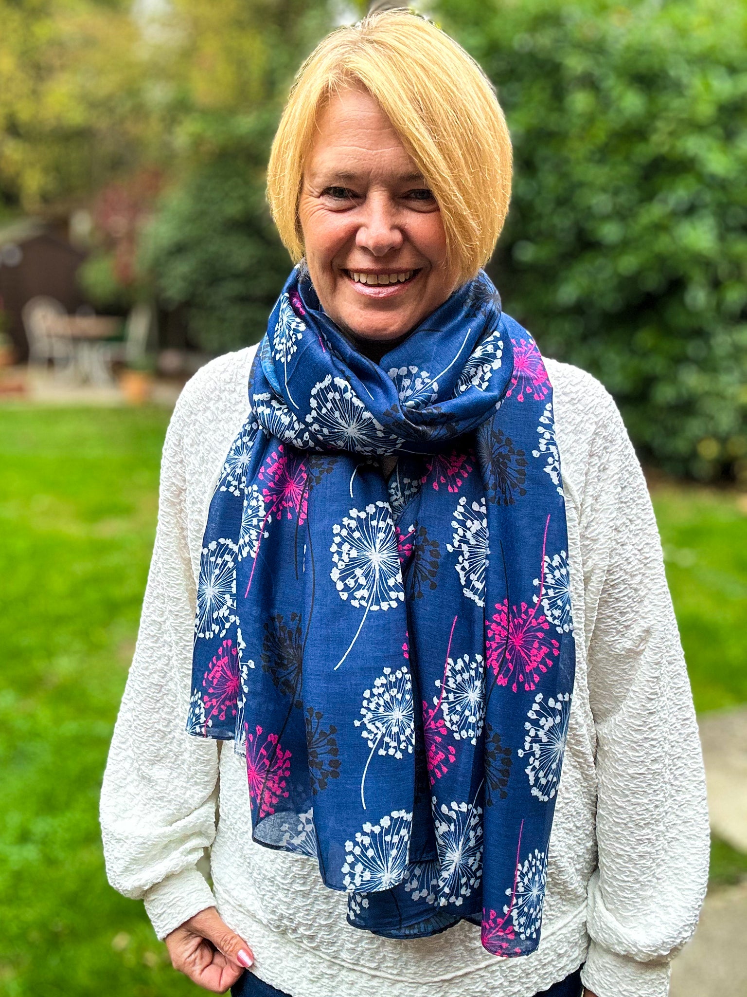 Ladies Dandelion Print NAVY BLUE WHITE CERISE PINK Fashion Scarf